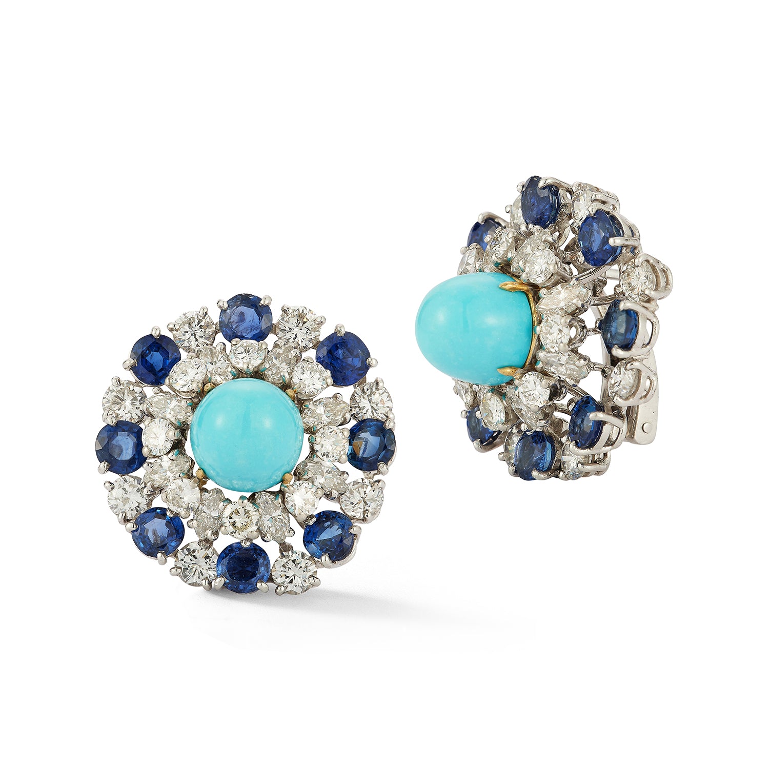 Bulgari Turquoise, Sapphire & Diamond Earrings