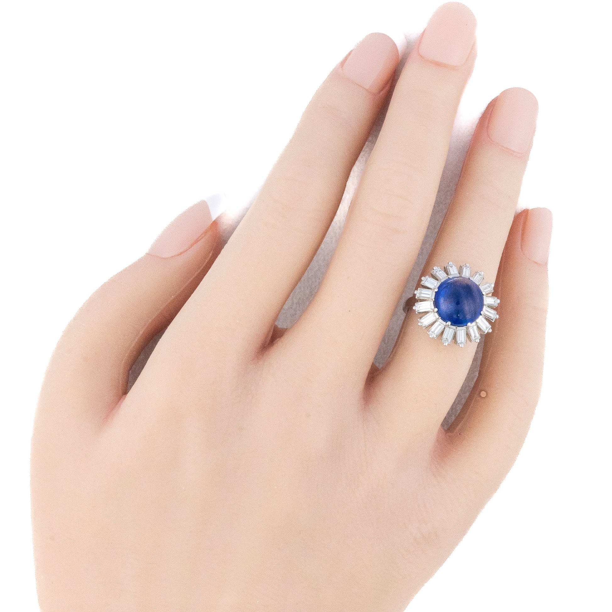 Cabochon Sapphire and Diamond Baguette Halo Ring