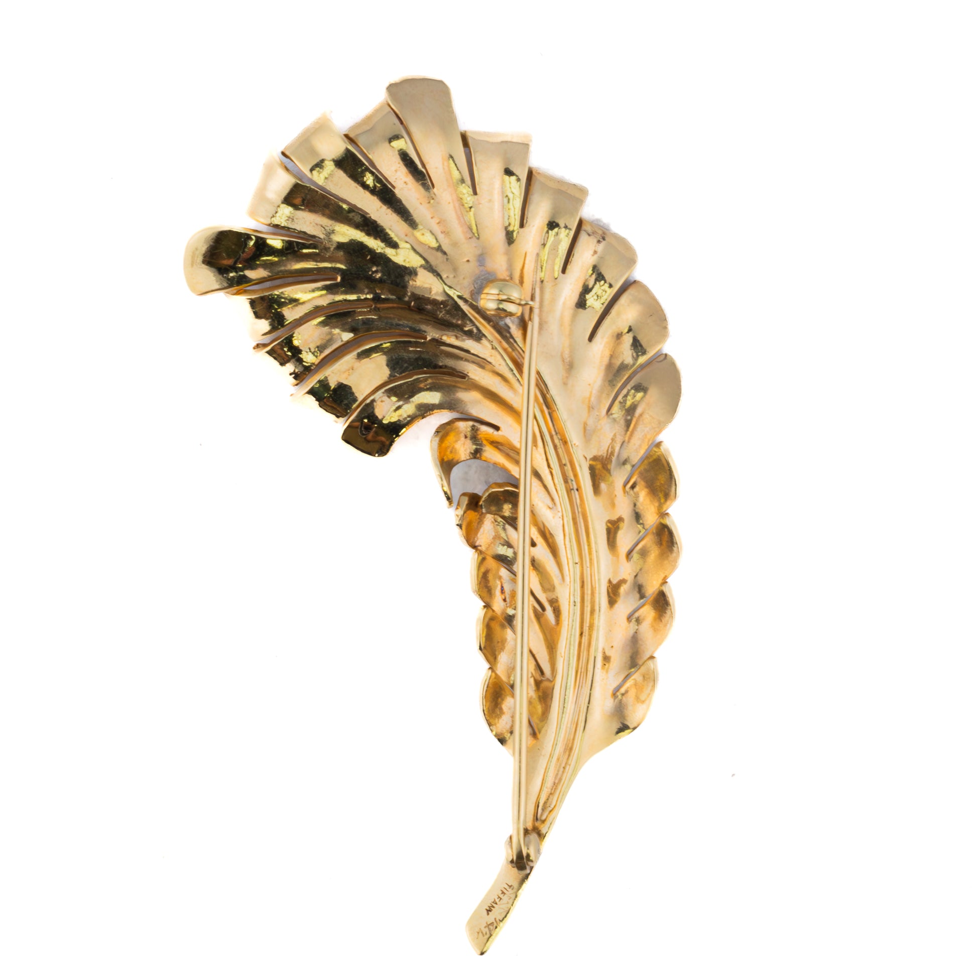Tiffany & Co. Diamond & Gold Feather Brooch